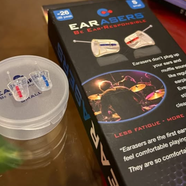 Previously I was using the Hearos high-fidelity ear plugs. They did very well, but I found that while playing with my band I was losing some of the frequencies and it caused some of the sounds to be lost in the mix. Plus, I had to take them out to talk to other band members between songs. It was just to the point that it was annoying. So I needed to try something new. These Earasers are perfect. They fit in very nicely (red=right, blue=left), are barely visible, and balance the sound perfectly. Exactly as the chart above shows, it has an even frequency response, but just enough so the sound does not damage your ears. Previously I was using the Hearos high-fidelity ear plugs. They did very well, but I found that while playing with my band I was losing some of the frequencies and it caused some of the sounds to be lost in the mix. Plus, I had to take them out to talk to other band members between songs. It was just... Previously I was using the Hearos high-fidelity ear plugs. They did very well, but I found that while playing with my band I was losing some of the frequencies and it caused some of the sounds to be lost in the mix. Plus, I had to take them out to talk to other band members between songs. It was just to the point that it was annoying. So I needed to try something new. These Earasers are perfect. They fit in very nicely (red=right, blue=left), are barely visible, and balance the sound perfectly. Exactly as the chart above shows, it has an even frequency response, but just enough so the sound does not damage your ears.